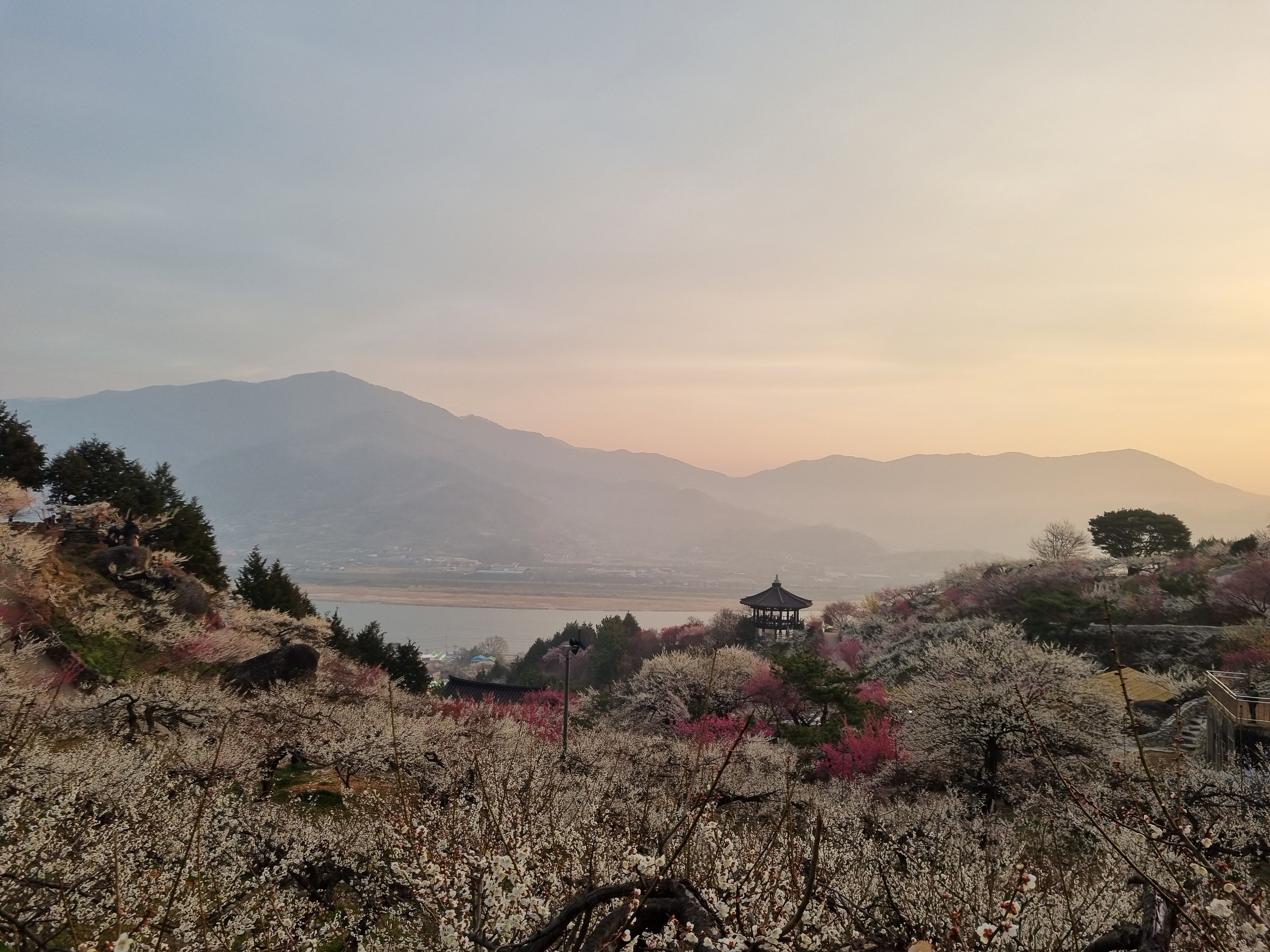 강과 매화꽃이 함께 어우러진 풍경은 많은 여행자들이 찾는 봄 명소입니다.